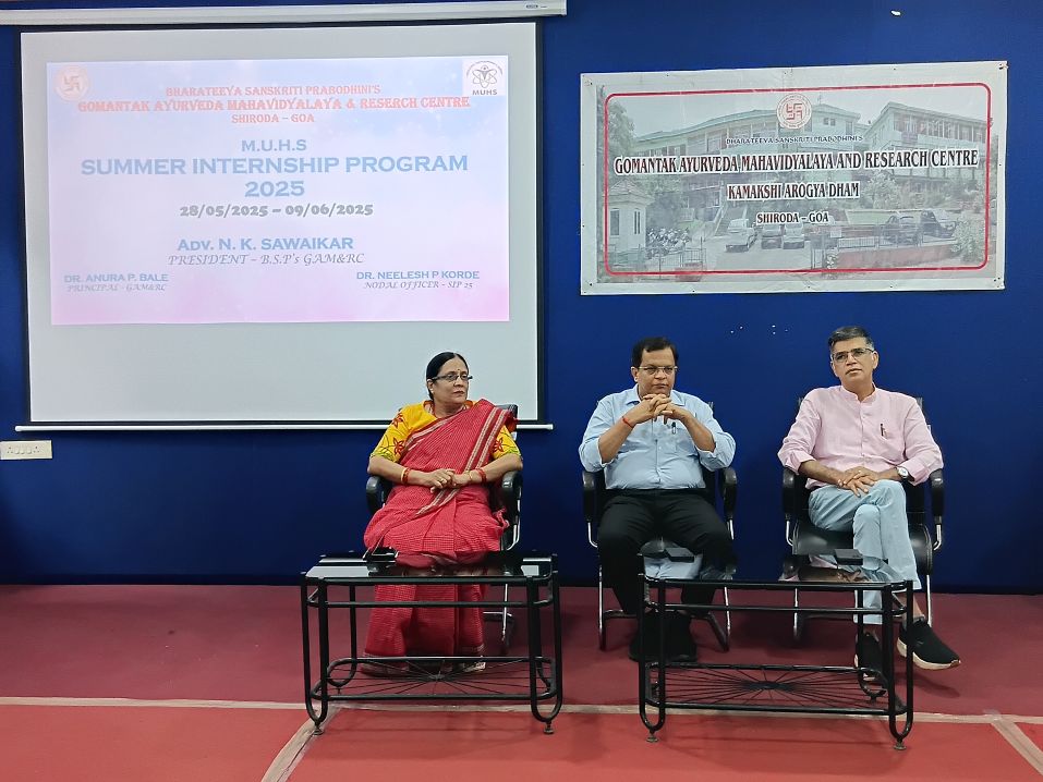 We are delighted to host the MUHS Summer Internship Program 2025 at Gomantak Ayurveda Mahavidyalaya & Research Centre, Shiroda – the first college outside Maharashtra to be selected for this prestigious initiative. This marks a significant milestone for our Institution and reflects our commitment to academic excellence and innovation.