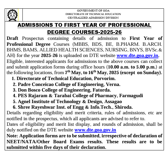 * Last Date for submission of above mentioned form in DTE is 16th May 2025